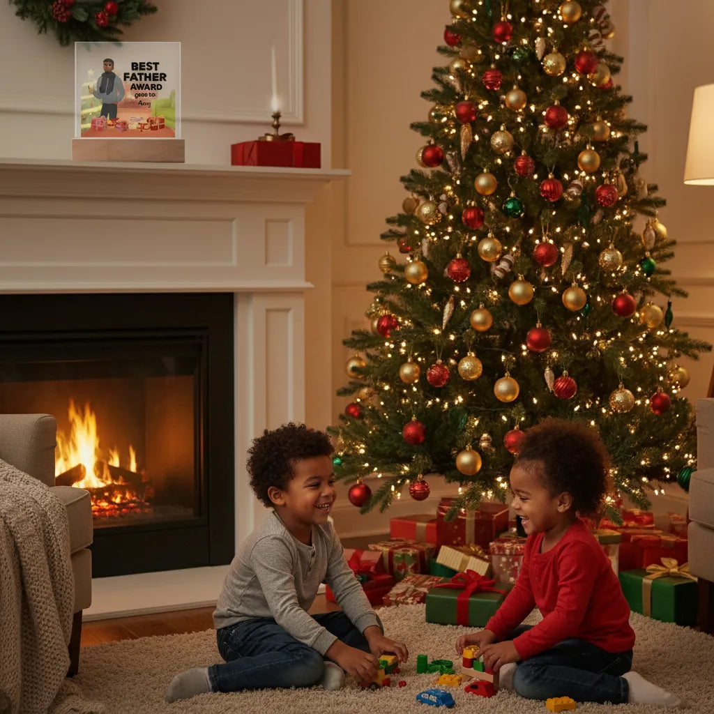 Best Father Award – Personalized Character Acrylic Plaque (with Wooden Base)