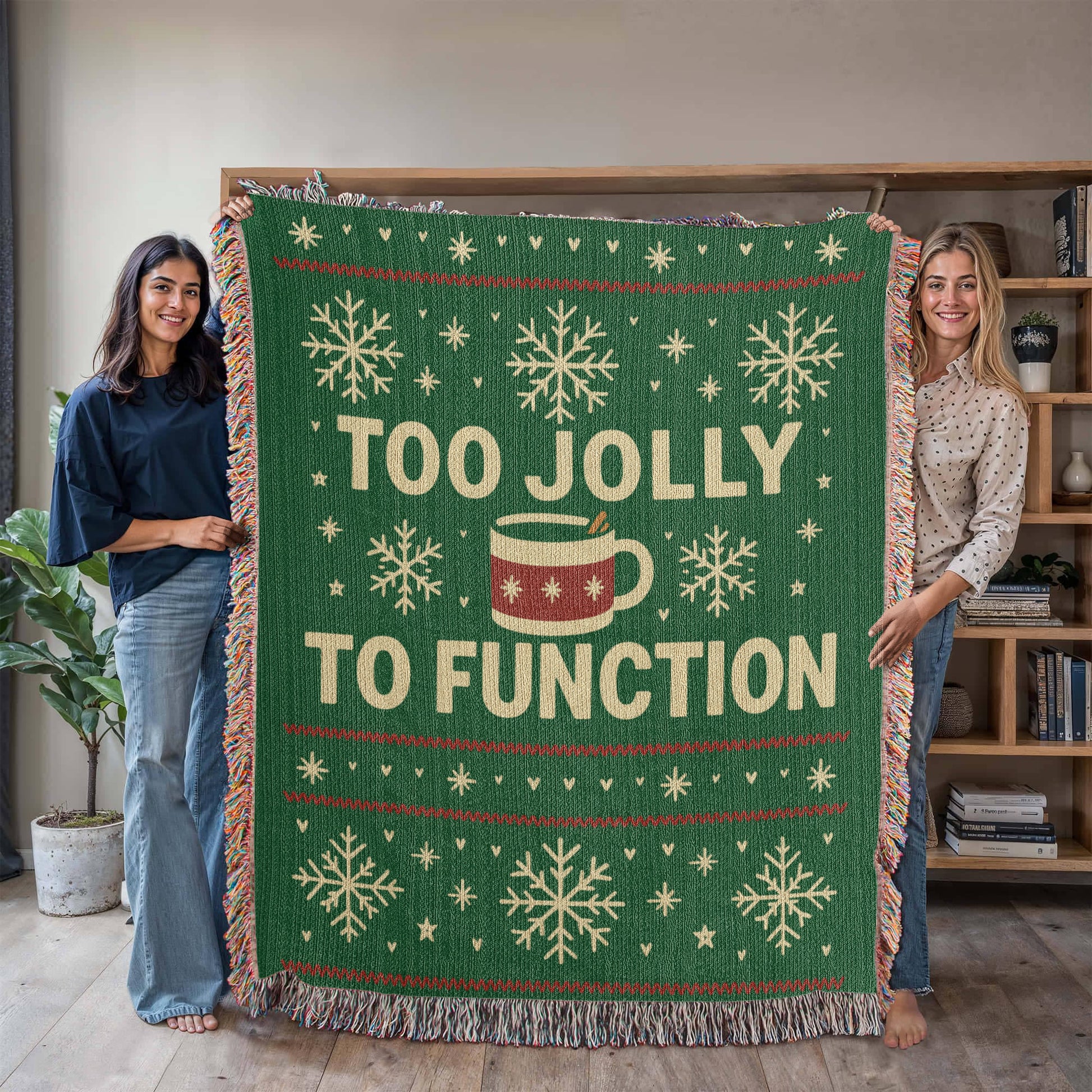 🎄 “Too Jolly to Function” Cozy Holiday Woven Blanket – 50×60